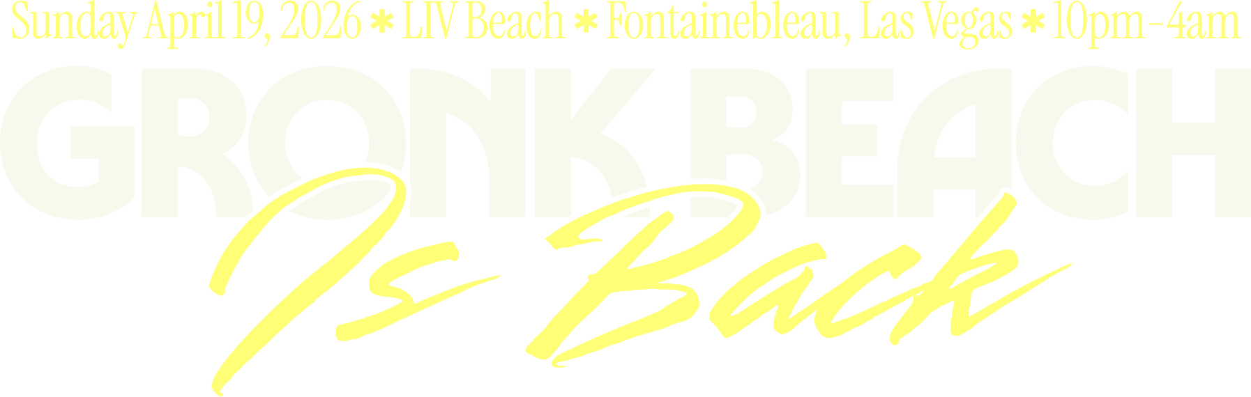 SUNDAY APRIL 19, 2026 ✦ FONTAINE BLEAU LAS VEGAS ✦ LIV BEACH ✦ 10:00PM - 4:00AM ✦